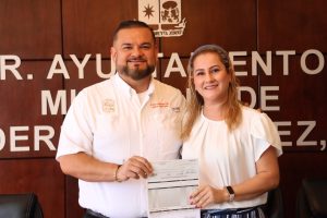 Cadereyta, N.L. – El presidente municipal, Carlos Rodríguez “El Cuate”, entregó un cheque de jubilación y pago de quinquenio a un trabajador sindicalizado por sus 25 años de servicio. Además, se otorgaron 15 cheques a empleados que han cumplido entre 10 y 30 años de labor en la Administración Pública Municipal.