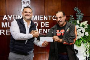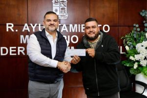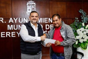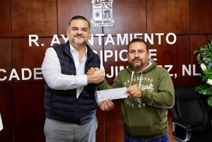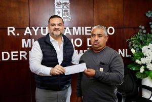 Cadereyta N.L.- El alcalde Carlos Rodríguez “El Cuate” entregó cheques a 25 trabajadores sindicalizados por su puntualidad, asistencia y eficiencia.