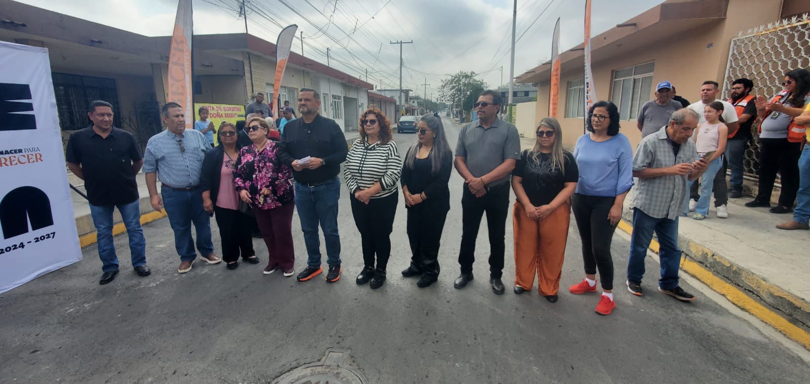 En la entrega de obra, acompañaron al Alcalde síndicos y regidores del H. Ayuntamiento, así como el secretario de Desarrollo Social, Rosendo “Chendo” Garza, y el secretario de Obras Públicas y Desarrollo Urbano, Juan Carlos Mauricio Méndez, quienes supervisaron los trabajos y destacaron la importancia de continuar mejorando las vialidades para la comunidad.