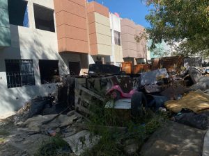 Reportan vecinos calle y casa llenas de basura en Mirador de San Antonio