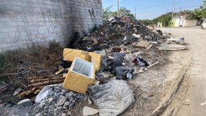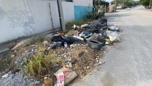 Reportan vecinos montaña de basura y escombro en Vistas del Río