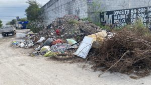 Juárez, N.L.- Un espectáculo deprimente, así calificaron vecinos de la colonia Vistas del Río, una montaña de desechos en el cruce de Vistas del Norte y Circuito Río Pánuco.