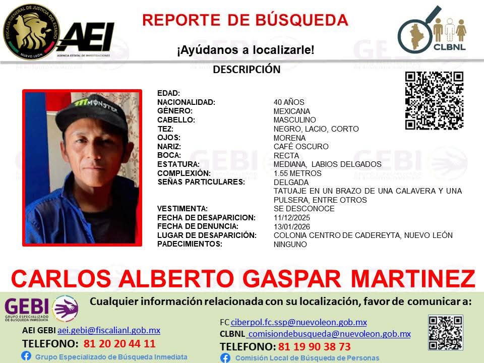Reportes de búsqueda Reporte de búsqueda Carlos Alberto Gaspar Martinez Publicada hace 4 días el 14 enero, 2026 Por Staff2 Facebook Twitter Email Temas relacionados: Te podría gustar