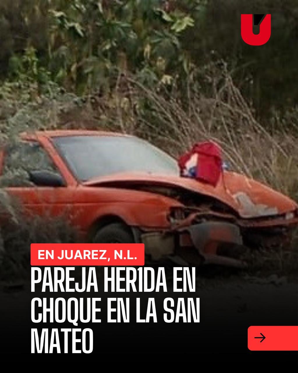 Juárez, N.L.- Una pareja que viajaba en un auto Tsuru resultó con le5iones en sus piernas, luego de chocar contra un poste en la Carretera a San Mateo, a la altura del Corralón Municipal