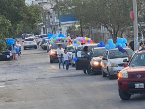 Juárez, N.L.- Con una caravana de vehículos adornados con globos, “Los Guerreros Azules Sin Límites”, salieron a pintar las calles de azul, por el Día Internacional de la Concientización del Autismo”, el pasado 2 de abril.