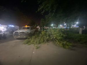 El Departamento de Ecología llegó al lugar y procedió a cortar el árbol en pedazos para retirarlo y limpiar el área.
