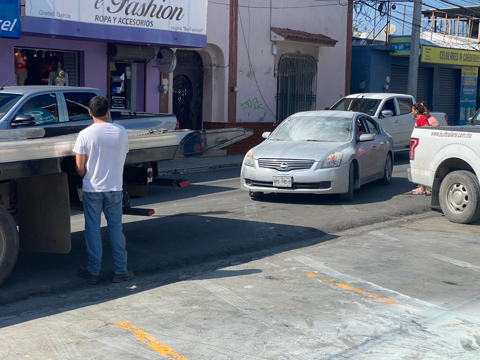 Cadereyta N.L.- Este lunes por la tarde, un vehículo se incendió en el centro de Cadereyta, específicamente en la calle 20 de Noviembre, antes de llegar al cruce con la calle Gonzalitos. Según testigos, la persona dueña del vehículo se encontraba comprando pinturas con su familia en un local cercano, cuando el vehículo comenzó a tirar humo y posteriormente ardió en llamas.