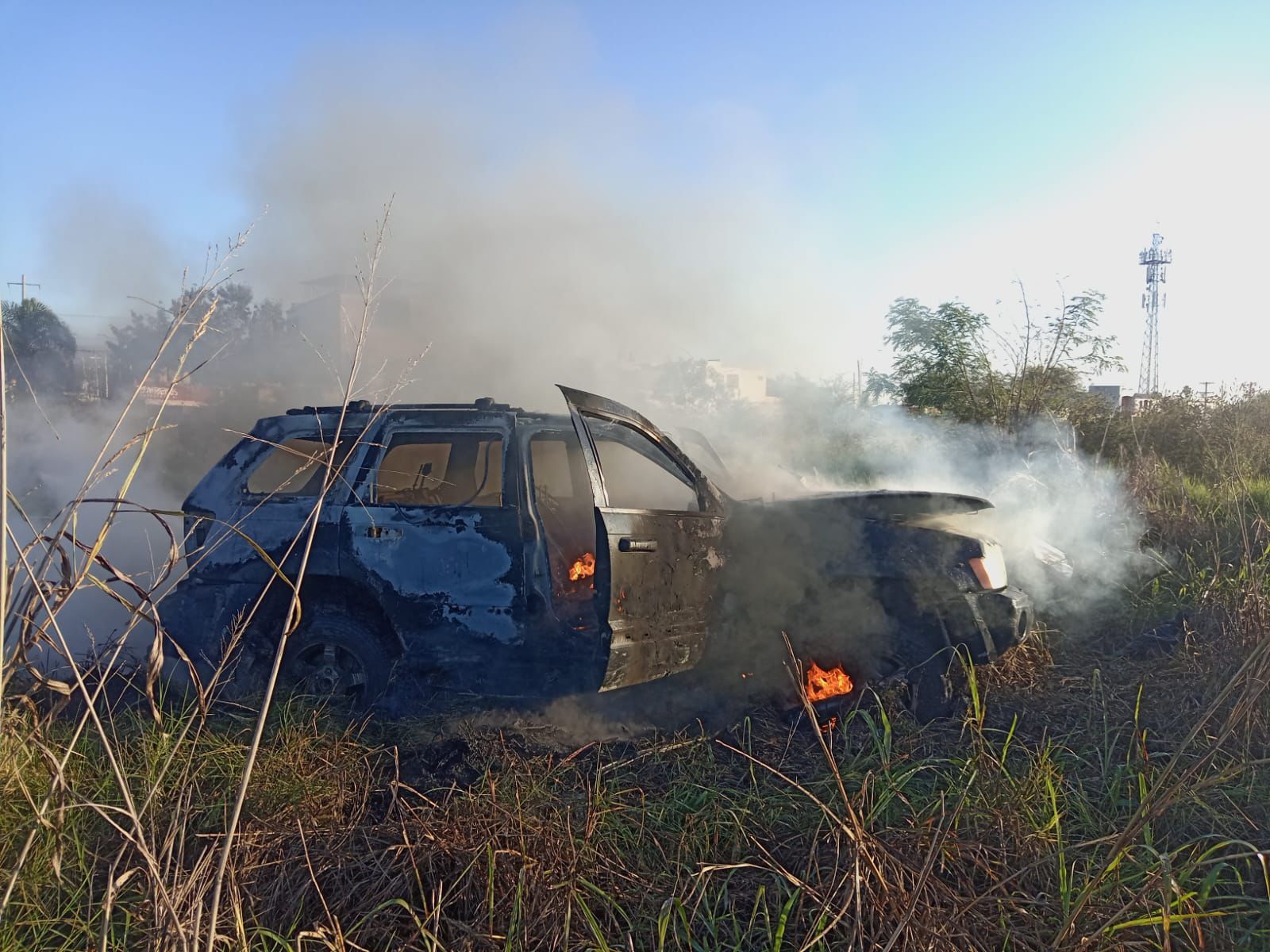 Se incendia vehículo en terreno baldío de la colonia Las Espigas
