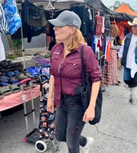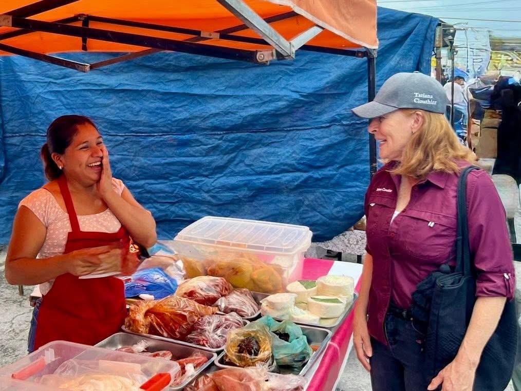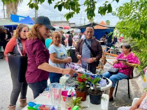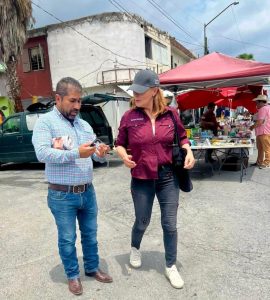 Juárez, N.L.- En un recorrido por el mercado rodante de Real de San José, Tatiana Clouthier escuchó de viva voz la queja de los oferentes sobre la presión recibida en las pasadas elecciones de parte de Movimiento Ciudadano.