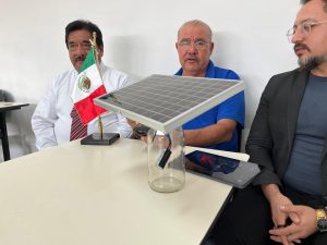 Formado por un panel solar, un módulo peltier y un recipiente de vidrio, el diseño ya ha sido probado en las diferentes muestras en la escuela secundaria de Juárez.