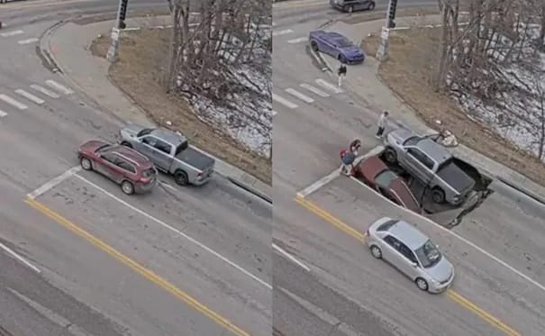 Por medio de redes sociales se viralizó un video sobre el momento justo en que se formó un socavón en calles de Nebraska, Estados Unidos, y que “devoró” dos vehículos que esperaban el paso. Hasta el momento no se reportan personas heridas por la caída de los automóviles que esperaban el cambio de luz en un semáforo.