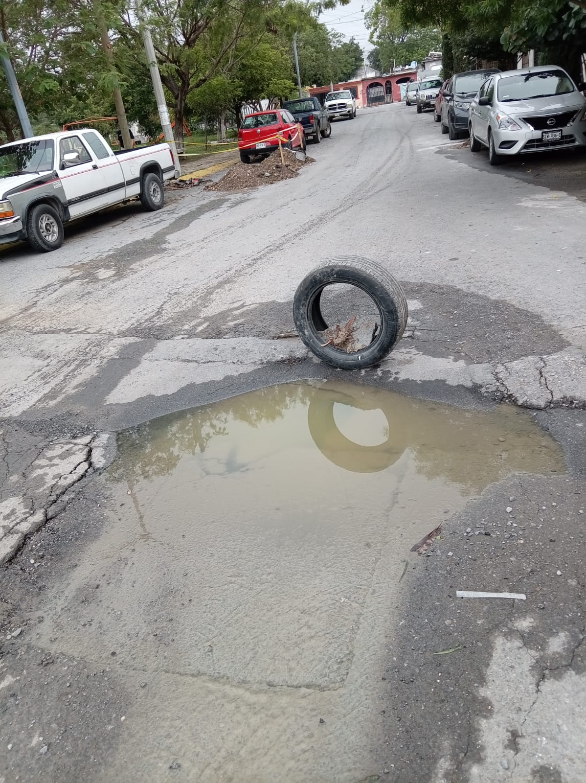 Relatan los vecinos que la falla ubicado en la calle Obsidiana cruz con Diamante ya había sido reparada hace un año, pero dejaron un socavón que provocó un hundimiento y desde hace una semana empezó a arrojar las aguas de drenaje al exterior.