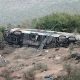 Autobús a exceso de velocidad se impacta contra barda y camioneta